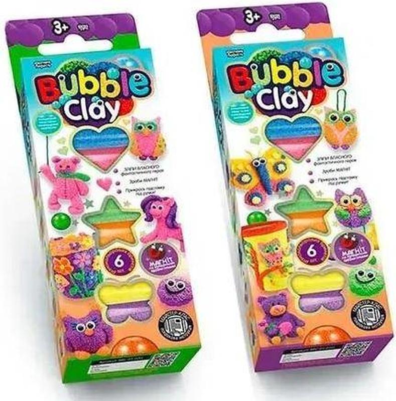 Bubble Clay - це кульковий пластилін, поліпшеної формули. Він складається з маленьких пінопластових кульок, скріплених між собою клейовим розчином. Деталі дуже легко приєднуються один до одного, досить просто прикласти одну до іншої, і вони склеяться без будь-яких проблем. При висиханні, фігурки з кулькового пластиліну тверднуть. Ліплення з такого матеріалу - суцільне задоволення і одне з найулюбленіших дитячих занять, популярність якого не слабшає з часом. Це не тільки захоплююче, але і дуже корисно, адже робота з таким матеріалом тренує дрібну моторику рук, безпосередньо пов'язану з формуванням мови, а також сприяє розвитку уяви, просторового мислення та художніх здібностей Вашої дитини.