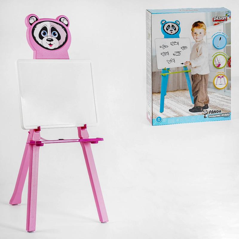 Дошка для малювання 03-418 від виробника Pilsan виконана в привабливому і компактному стилі. Головна особливість моделі - вушка панди, що прикрашають вершину мольберта. Конструкція виконана з первинної пластмаси та забарвлена високоякісними фарбами. Збирається за 8 простих кроків по інструкції. Всі деталі легкі, але при цьому зібрана модель стійко стоїть на рівній поверхні завдяки присоскам на ніжках. Мольберт доповнений панеллю під канцелярію. Розмір мольберта в зібраному вигляді - 97 см х 43 см х 46 см. Корисна площа дошки - 40 см х 30 см. Розмір упаковки: 34 см × 10 см × 43 см
