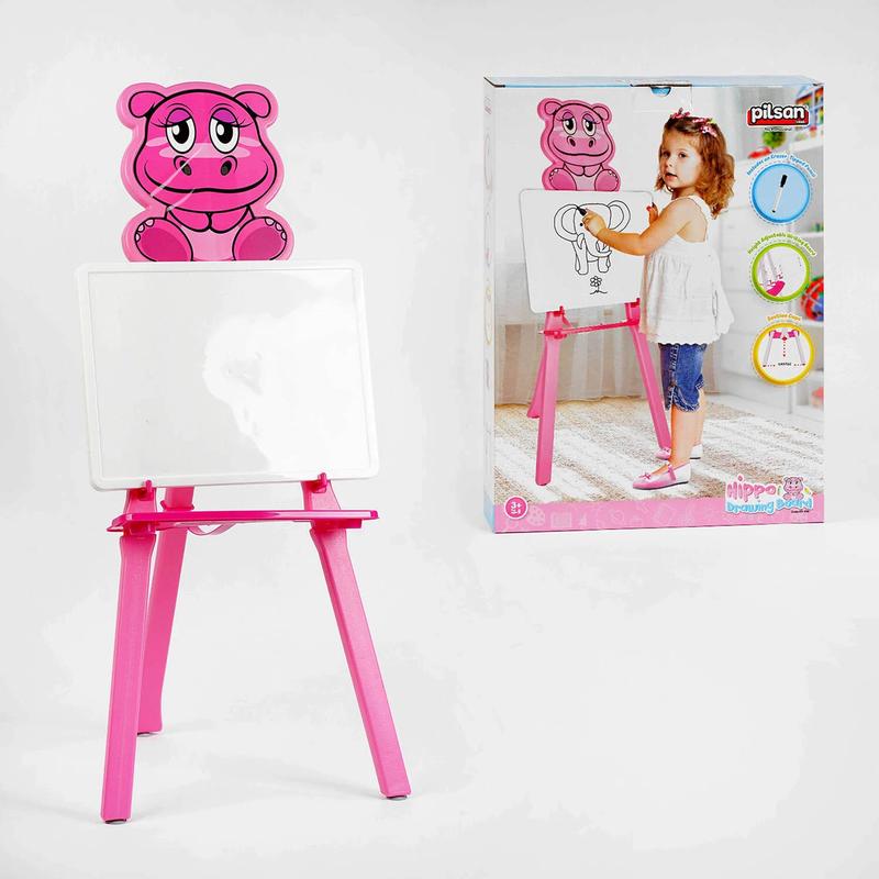 Мольберт для малювання 03-420 від якісного виробника Pilsan урізноманітнює не тільки творчий, але і навчальний процес Вашого малюка. Завдяки своїй оригінальній формі у вигляді милого бегемотика і ніжно-рожевій кольоровій гамі, модель створить оригінальну родзинку в дитячій ігровій кімнаті та відмінно впишеться, в будь-який інтер'єр. Мольберт встановлений на три міцних ніжки та обладнані гумовими присосками, які допоможуть стійко зафіксувати конструкцію на рівній поверхні. Також широка вбудована полиця створить комфортні умови для творчого процесу, адже на ній можна буде розмістити всі необхідні інструменти та аксесуари. Особливості: - стильний і оригінальний дизайн; - легка і високоміцна конструкція; - вбудована широка панель під канцелярію; - сухостираючий маркер. Всі елементи виготовлені з високоміцної первинної пластмаси та пофарбовані яскравими нетоксичними фарбами, які абсолютно безпечні для маленьких користувачів. Розмір мольберта в зібраному вигляді - 100 х 46х52 см. Комплектація: - деталі мольберта; - дошка; - сухостираючий маркер; - інструкція. Розмір: - Довжина (см):46 см - Ширина (см):50 см - Висота (см):97 см Розмір упаковки: 34 см × 10 см × 43 см