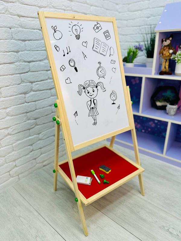 🪵Деревянная игрушка Мольберт🧑🎨 Артикул: 2220 ✍️Описание: Детская доска знаний - деревянный магнитный мольберт для рисования и обучения🎨 Двусторонняя универсальная модель отличается устойчивой конструкцией разработанной из экологически чистой древесины🪵абсолютно безопасной для детского здоровья🧒 ❗️Высота мольберта регулируется ⬆️⬇️ 🗃Комплектация: Мольберт двусторонний🎨🪵 Маркер🖍️ Цветной Мелки🧑🎨 Губка🧽