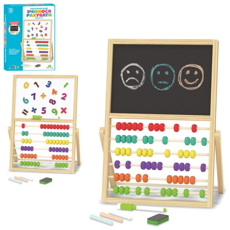 Этот многофункциональный учебный набор — идеальный инструмент для развития математических навыков и творчества вашего ребенка! Он сочетает в себе несколько учебных элементов, что делает процесс обучения увлекательным и эффективным. Что входит в набор? Двусторонняя доска для рисования: Магнитная сторона: для крепления магнитных цифр и знаков, а также рисования маркером. Сторона для мела: для классического рисования и письма мелом. Счетная доска: классический инструмент для освоения счета и базовых арифметических операций. Магнитные цифры и математические знаки: для составления примеров, изучения чисел и развития логического мышления. Мел (3 шт.), маркер и губка: все необходимое для немедленного начала обучения и творчества. Почему этот набор незаменим? Комплексный подход к обучению: помогает освоить счет, простые арифметические действия, выучить цифры и математические символы. Развитие мелкой моторики: рисование, письмо и манипуляции с магнитными элементами улучшают координацию и ловкость рук. Стимулирование творчества: Доска для рисования позволяет ребенку свободно выражать себя, создавая рисунки и развивая фантазию. Многократное использование: Легко чистится и готов к новым занятиям снова и снова. Удобные размеры: Компактный (30х15,5х39 см) и удобный для размещения в детской комнате. Этот учебный набор станет прекрасным подарком и незаменимым помощником для родителей, которые стремятся развивать своего ребенка в игровой форме!