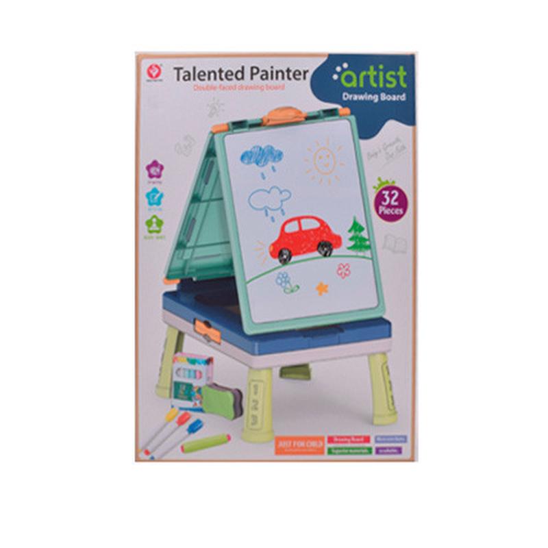Двухсторонний мольберт 050-17 с удобной рабочей поверхностью, где одна сторона предназначена для рисования мелками, другая – стирающимся маркером, подойдет для маленьких креативщиков. Универсальный детский мольберт отличается оригинальным, красочным внешним видом с устойчивой конструкцией, разработанной из надежно пластика. Благодаря функциональному исполнению мольберт можно легко сложить, упаковать в коробку и взять с собой. В наборе предусмотрены дополнительные аксессуары, включая маркеры и губку для стирания надписей. Если Вашему начинающему художнику не хватает пространства для создания своих неповторимых шедевров, то этот мольберт непременно ему понравится. Рисование мелками и маркерами отлично развивает воображение, мелкую моторику, логику, цветовое восприятие и память. Представленная в ярком исполнении модель вызовет у каждого ребенка массу положительных эмоций.