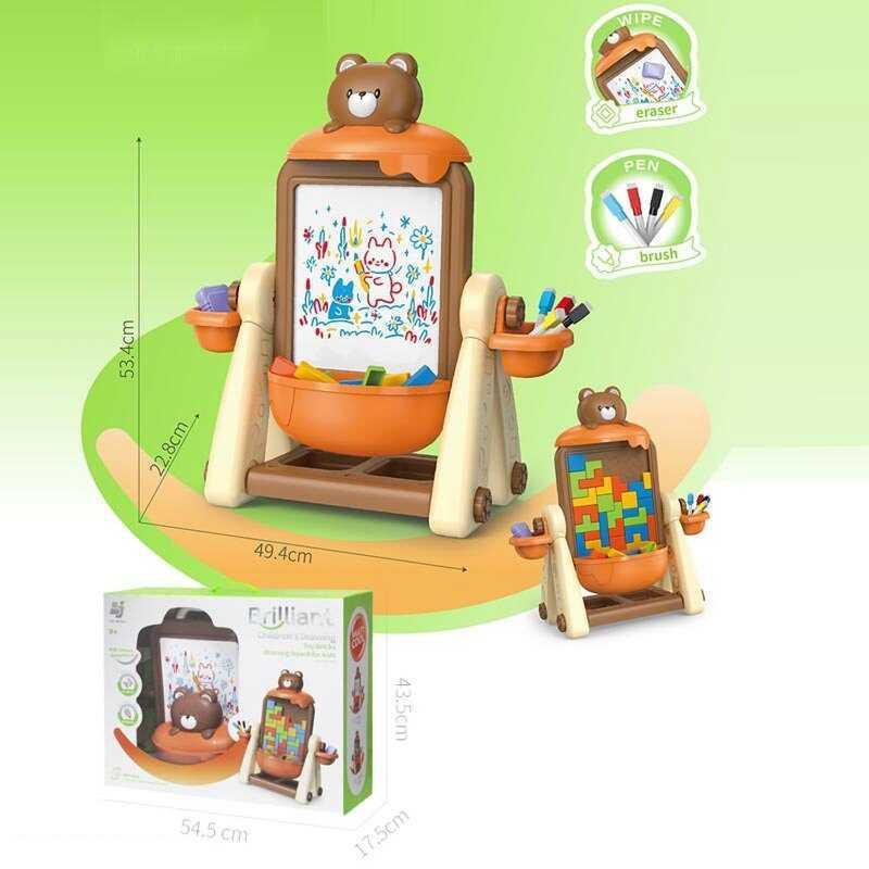 Дитячий мольберт для різноманітних активностей! Цей чудовий двосторонній мольберт 899-93 Y стане незамінним помічником у розвитку вашої дитини. Одна сторона мольберта обладнана спеціальною дошкою для малювання маркерами, що дозволяє малювати, писати та легко стирати. Це забезпечує безмежні можливості для творчості та навчання, адже дитина може використовувати його безкінечну кількість разів! На другій стороні знаходиться панель для складання механічного тетриса, що сприяє розвитку логічного мислення та дрібної моторики. Цей процес не лише захоплює, але й навчає, що робить гру ще більш корисною! Особливості мольберта: - Розмір мольберта: 49,4 х 22,8 х 53,4 см; - Дві сторони: - Сторона 1 - для малювання маркерами; - Сторона 2 - для складання механічного тетриса (елементи додаються); - Набір з 4 маркерів “пиши-витирай”; - Губка для легкого стирання написів; - Мініальбом для малювання в комплекті; - Зручні органайзери для зберігання всього необхідного приладдя. Обирайте мольберт 899-93 Y та дайте вашій дитині можливість розвивати творчість і навички гри одночасно!
