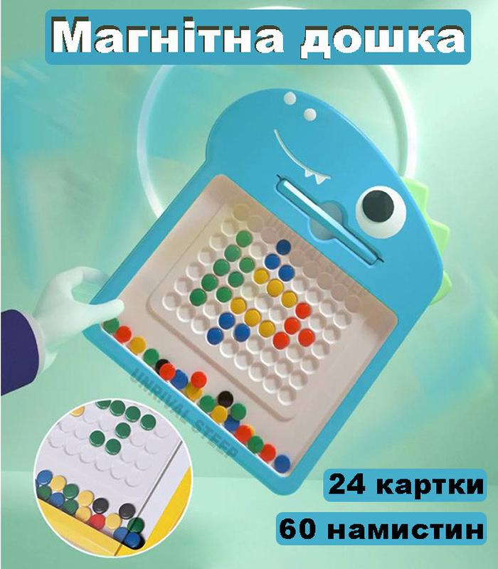 Дошка магнітна мозаїка "динозавр" дитячий планшет для малювання з 60 магнітними намистинам...