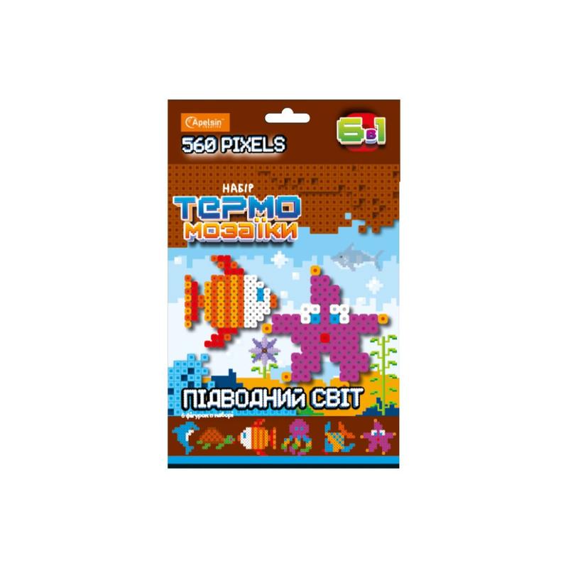 Формат/розмір набору: 230×145×30 мм Комплектація: 600+/- термопікселів для 6 фігурок; пластмасова основа - 1 шт; самоклеюча магнітна стрічка для 6 магнітів; інструкція зі схемами для складання; термокалька. Набір упаковано в картонну коробку з європідвісом (розмір: 230×145×30 мм; офсетний друк, глянцева ламінація). Кількість термопікселів у наборів: 600+/- Кількість дизайнів: 4 ; МІКС дизайнів в упаковці Мова інструкції: українська