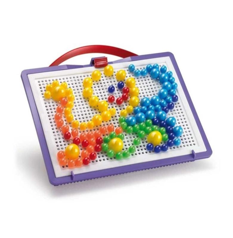 Опис Розвиваючий набір для занять мозаїкою створений для знайомства дитини зі світом форм, кольорів і фантазій. Малюк зможе створити малюнок за зразком або вигадати свій власний сюжет! Особливості дитячої мозаїки: У наборі 160 фішок діаметром 10, 15 і 20 мм 6 кольорів, тож малеча зможе створити безліч різноманітних сюжетів. Фішки зберігаються у пластиковому кейсі із застібкою та ручкою для перенесення. Кришка кейса є безпосередньо ігровим полем. Завдяки грі з мозаїкою у дитини сформується художній смак, акуратність і точність, увага і творчі здібності. Всі іграшки компанії перед запуском в серійне виробництво проходять обов'язкову апробацію в дитячих садочках і школах. Весь процес виробництва іграшок, від проектування до упаковки готових виробів, проходить на фабриці Quercetti в місті Турині (Італія). До набору входить: 160 фішок Кейс для зберігання і перенесення Дошка 22х16 см Гра розвиває: уяву, дрібну моторику, логіку, творче мислення. Рекомендовано для дітей від 3 років.