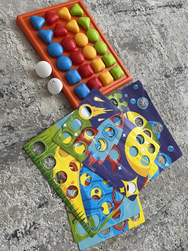 6 карток +26 кнопок На білих очі стерлись ,але можна намалювати . Класно розвиває фантазію ,а також вчити кольори . Пару карток пошарпані (видно на фото )