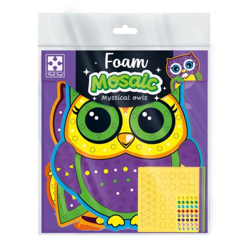 Кто они? Эта тройка мистических птиц очень загадочная и знает тысячи тайн прошлого, настоящего и будущего. Набор для творчества Vladi Toys с мягкой мозаикой и стразами «Мистические совы" позволяет ребятишкам украсить таинственных птичек нецупкими частями мозаиками и сияющими стразами. С готовыми изделиями можно устроить домашнюю выставку или спектакль, украсить внутреннее пространство помещения или провести ролевую игру. Еще можно использовать в качестве открытки для родственников, близких, друзей. Просто нарисуйте или напишите поздравление на обратной стороне основы. Или подарите на память! Что делать? Выберите основу с персонажем. Возьмите мягкие цветные планшеты с частями мозаики. Доставайте фигурные части мозаики по одной. Прикладывайте к основе с выбранным персонажем на места, отмеченные такой же фигурой. Немного прижмите немного. Вуаля, готово! Повторите такую же процедуру со стразами. Играем и тренируем: внимание, творческие навыки и мелкую моторику. Набор содержит: 3 основы, 3 планшета с мягкой мозаикой, 1 планшет со стразами. Язык: украинский. Возраст: 3-6 лет.