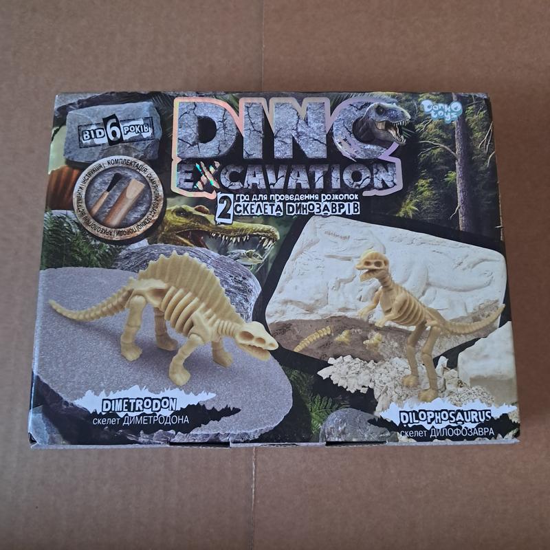 Набор для раскопок "Dino Excavation" динозавры понравится и девочке, и мальчику. Ваш ребенок почувствует себя настоящим археологом! Ему предстоит с помощью специальных инструментов найти и извлечь из гипса "кости" динозавра и собрать его. Занятия это будет очень увлекательным и познавательным! Яркая инструкция поможет правильно подойти к процессу раскопок и в увлекательной игровой форме расскажет вам о некоторых исторических фактах найденных динозавров. Жемчужные фигуры станут отличным трофеем и коллекционной игрушкой Вашего палеонтолога! Набор из двух скелетов динозавров: скелет Диметродона и скелет Дилозавра. У комплекті: - блок пластификатора ("шматок породы") с кусочками 2-х скелетов динозавров, содержащихся внутри него, - инструменты для раскопок: косточка и стек - детальная инструкция и интересные сведения Возраст: 6+ Производитель: Danko Toys, Украина Размер коробки: 24x5x19см