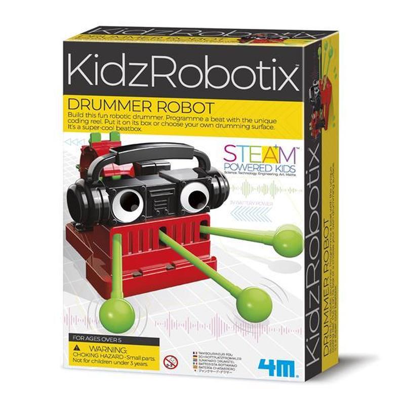 Превратите обыденные предметы в ударный музыкальный инструмент! Описание продукта: Набор "Робот-барабанщик" от 4M — это захватывающий способ для детей от 5 до 7 лет узнать о базовых принципах программирования и механики, создавая собственного робота, способного воспроизводить ритмы. Особенности продукта: Программирование ритма: Используя цилиндры и штифты, можно задать ритм и последовательность ударов барабана. Образовательный опыт: Изучите механические и программные принципы, использованные в первых "компьютерах". Развивает навыки: Способствует развитию моторики, логического мышления, изобретательности и внимания. Комплектация: В наборе: основание робота, крышки, управляющая система, детали для программирования ритма, инструкция со схемами и интерактивные элементы для сборки. Дополнительно необходимо: маленькая крестовая отвертка, 2 батарейки AAA.