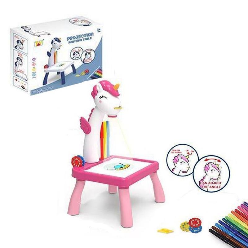 Вид творчості: Малювання Тип продукту: Набори для творчості Цікавий дитячий набір для малювання. Невеликий проєктор транслює зображення на аркуш паперу, а дитина може це зображення обводити. У наборі є 3 диски з картинками різної тематики, 12 кольорів фломастерів, губка та глянсовий лист для малювання, з якого малюнок можна легко стерти. Іграшка працює від 2 батарейок АА. Для увімкнення потрібно покрутити ріг. Кут нахилу голови можна змінювати. Розмір іграшки в зібраному вигляді: 30х19х20 см. Габарити в упаковці: 7 x 19 x 23 см Габарити без паковання: 20 x 30 x 19 см Страна виробник: Китай Матеріал: Пластик Комплектація: Проєктор, деталі для складання столика, 12 фломастерів, губка, аркуш для малювання