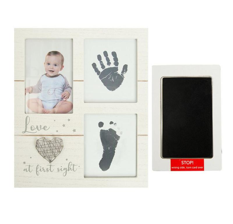 Потрійна фоторамка з чорнилом, яка дозволяє дуже швидко і надзвичайно просто зробити сувенірний відбиток, наприклад, руки, навіть для зовсім маленьких дітей. У набір входить дерев'яна рамка і чорнило для виготовлення відбитка. Ідеальний подарунковий набір.