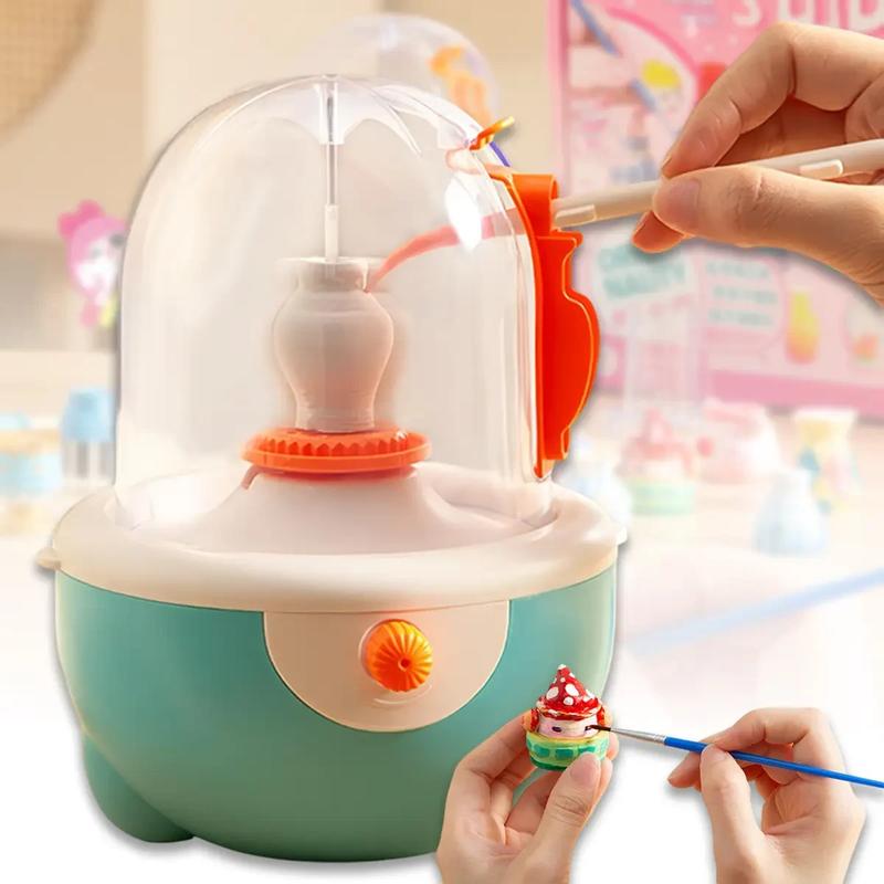 Описание Набор для творчества Гончарный круг с инструментами, глиной и красками TNWX-4710C USB Мини-студия гончарного дела – это увлекательный и безопасный набор для детского творчества, позволяющий юным мастерам создавать уникальные керамические изделия прямо у себя дома. В комплекте есть все необходимое для работы – электрический гончарный круг, глина, краски и специальные инструменты. Процесс лепки не требует обжига: изделия можно просто высушить на воздухе и раскрасить. Благодарябесступенчатой регулировке скорости и мощному двигателю с высоким крутящим моментом, ребенок сможет легко контролировать процесс формования, создавая различные формы и текстуры. Съемный поддон защищает поверхность от брызг и облегчает уборку после работы. Этот набор помогает развивать воображение, мелкую моторику и художественные навыки, а также обучает основам работы с керамикой. Идеальный выбор для детей, увлекающихся искусством и творчеством! o1cn01sonpji248wsmjl7wz_9__cib_topaz_enhance_4x.jpeg Преимущества: Простота использования – электрический гончарный круг с плавной регулировкой скорости позволяет легко управлять процессом лепки. Безопасность – не требуется обжиг, изделия высыхают естественным способом. Развитие навыков – способствует развитию мелкой моторики, творческого мышления и концентрации внимания. Полный комплект – включает все необходимые инструменты, глину и краски для немедленного начала работы. Легкость в уходе – съемный поддон защищает поверхность от загрязнений и облегчает уборку. Идеальный подарок – подходит для детей от 6 лет, любителей искусства и рукоделия. Характеристики: Тип: набор для гончарного дела Материалы: пластик (ABS), алюминиевый сплав, электронные компоненты Размер механического блока: около 20 × 15 × 15 см Цвет: зеленый, белый Питание:USB Скорость вращения: бесступенчатая регулировка Комплектация: 1 × Основание 1 × Корпус 1 × Механический блок 4 × Формовочных аксессуара 1 × Маленький диск 1 × Большой диск 1 × Краска 1 × Ручка 1 × Стержень 1 × Ось 1 × Фартук 4 × Крепления 4 × Крепежных аксессуара 1 × Губка 1 × Прозрачное масло 2 × Упаковки глины 1 × Шкала 1 × Нож 1 × Руководство по эксплуатации Этот набор поможет вашему ребенку раскрыть творческий потенциал и освоить основы гончарного дела в комфортных домашних условиях!