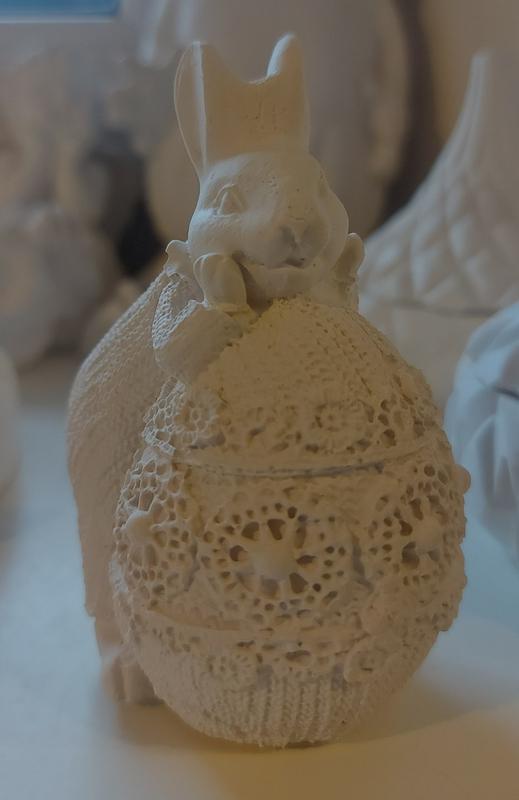 Гипсовая фигурка для раскраски. кролик с яйцом. мальчик.