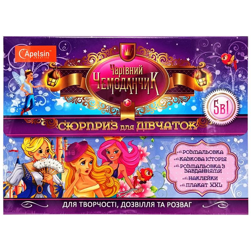 "Чарівна валізка" - це прекрасний подарунок, якому будуть раді і хлопчики, і дівчатка. Тільки уявіть захват дітей, коли, відкривши "Чарівну валізку", вони знайдуть там стільки цікавинок - усе для розвитку, творчості та цікавого дозвілля в одному наборі! З яскравими наліпками та постером для дівчаток/хлопчиків Адже в цій незвичайній скриньці на дівчаток і хлопчиків чекають розмальовки, розвивальні завдання, ілюстрована книжечка з цікавою розповіддю, яскраві наліпки та тематичний постер, який можна розфарбовувати. Усе легко поміщається у валізку, завдяки чому дитина може носити із собою улюблений набір. Порадуйте дітей чудовим подарунком "Чарівна валізка" та подаруйте їм незвичайні пригоди у світі фантазії! До набору входить: Валізка картонна з пластиковою ручкою, термозбіжна плівка. Розмальовка ч/б В5 16 ст. Розмальовка з розвивальними завданнями В5 16 ст. Книжечка з ілюстрованою розповіддю В5 12 ст. Плакат для розфарбовування В2 Аркуш із підсіченими наліпками В5