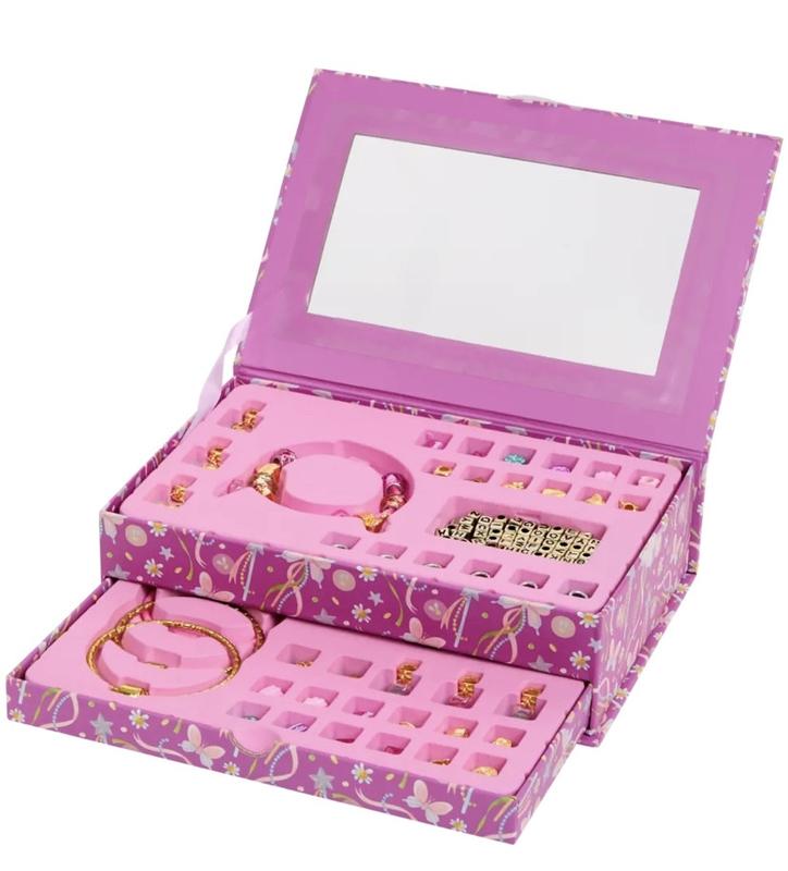 Набор для детского творчества Jewellery Box (изготовление украшений) Стильный набор для создания собственных украшений, упакован в красивую подарочную коробочку. Внутри - качественные бусины и все необходимые элементы для творчества. Идеальный подарок для девочки, которая любит делать браслеты, колье и волшебные аксессуары своими руками.