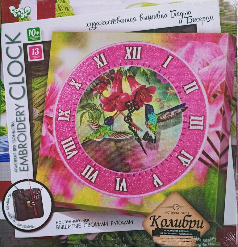 Вам не придется «переводить рисунок», расчерчивая его контуры и направления нити, цветной рисунок напечатан на холсте, а увеличенная «схема-подсказка» позволит с максимальной точностью определить цвет и направление стежков. Особым преимуществом данного набора является деревянный подрамник, на который натянут холст. Работу легко вышивать используя данный каркас как пяльцы, а готовые часы Вы сможете повесить как картину, превосходно дополняющую любой интерьер! Прекрасно подходят для детей и начинающих мастеров, а так же придутся по вкусу опытным рукодельницам, ведь «Вышитые часы», созданные своими руками, станут прекрасным украшением интерьера, а так же стильным и авторским подарком близкому человеку! Перед началом работы подготовьте рабочее место: разложите на хорошо освещаемый стол составляющие набора и приступайте к работе! СОВЕТЫ ПО ВЫШИВАНИЮ: • Данная работа вышивается сложением в ОДНУ НИТЬ (см. схему-подсказку). • Вышивка будет смотреться аккуратной при условии направленной «художественной» укладки стежка - когда стежки имитируют направление (в данном случае - шерсть). • Тонкие элементы (усики, реснички) вышиваются стежком в одну нить, соответствующего цвета, поверх основной вышивки. • Избегайте узелков, не стоит использовать слишком длинную нить (более 50 см). Нити закрепляйте с изнанки, с помощью нескольких узелков. Комплект содержит: пластиковый часовой механизм со стрелками без батарейки - 1 шт; комплект бисера; комплект ниток мулине; игла - 1 шт; схема-вышивка с циферблатом на подрамнике - 1 шт; канцелярская кнопка - 2 шт; пошаговая инструкция - 1 шт. Размеры упаковки (ДхШхВ) 320х326x42 мм