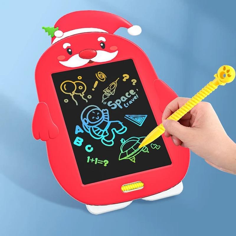 Електронний планшет для малювання зі стилусом Santa Pad 8.5" Дитячий , стирання кнопкою, із захистом Стане чудовим подарунком будь-якій дитині від 3 років. Корпус планшета зроблений у формі доброго Санта Клауса, що однозначно викличе позитивні емоції в кожної дитини. Робоча поверхня планшета має достатні розміри для втілення будь-яких художніх задумів. Зроблений з ABS- пластику. Є кольорова LCD поверхня різнобарвного градієнта, завдяки якій малюнки, позначки та записи матимуть привабливіший вигляд. Для малювання та писання використовується пластиковий стилус, який входить до комплектації. На задній поверхні пристрою розташовані відсік для батарейки та кнопка блокування й розблокування кнопки стирання малюнків/записів. Працює планшет від однієї батареї CR2025. Графічний планшет не використовує для малювання жодної електричної енергії, вона потрібна лише для стирання написаного. Тому одній маленькій батарейці досить для того, щоб планшет працював до 12 місяців, або витримував до 50 000 циклів малювання-стирання. Для того, щоб стерти малюнки або позначки з екрана, необхідно перемкнути повзунок у режим розблокування й одноразово натиснути на ніс. Якщо вам потрібно, щоб малюнок залишався на екрані довше, заблокуйте кнопку стирання і, під час натискання на неї, нічого не станеться. Такий планшет однозначно потішить дітей і дасть їм розвивати необхідні навички, розкриваючи свій творчий потенціал, а батькам подарує кілька годин спокою, оскільки дитина більше часу проводитиме за захопливим і корисним заняттям. Характеристики: Тип: LCD-планшет для малювання Вік: 3+ Живлення: одна батарейка CR2025 Дисплей: кольоровий (градієнт) Матеріал: ABS пластик. Діагональ: 8,5 дюйма. Размер: 32.3 х 21.4 х 1,2 см. Комплектація LCD- планшет; Пластиковий стилус; Планшет Электронная доска для рисования с ЖК- дисплеем 8,5 дюйм SXB