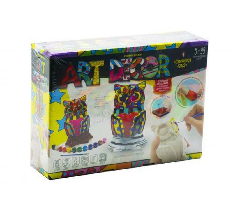 Art Decor — це набір для творчості, який допомагає майстерно опанувати техніку гіпсового лиття і 3D-розмальовки. Ви зможете створювати своїми руками унікальні інтер'єрні сувеніри-подарки. У наборі є все необхідне._ Бренд: Dankotoys Паковання: Коробка Колір: Різнобарв Тип ел-тів живлення: Немає Ел-ти живлення в комплекті: Немає Вага в упаковці: 1165 г Габарити в упаковці: 19.5 x 26 x 7.5 см Страна виробник: Україна Матеріал: Комбінований Комплектація: Порошковий гіпс (3 шт.), силіконова форма, акрилові фарби (12 кольорів), акриловий лак, губка, пензлик, фіксувальна конструкція, цвяхи, інструкція