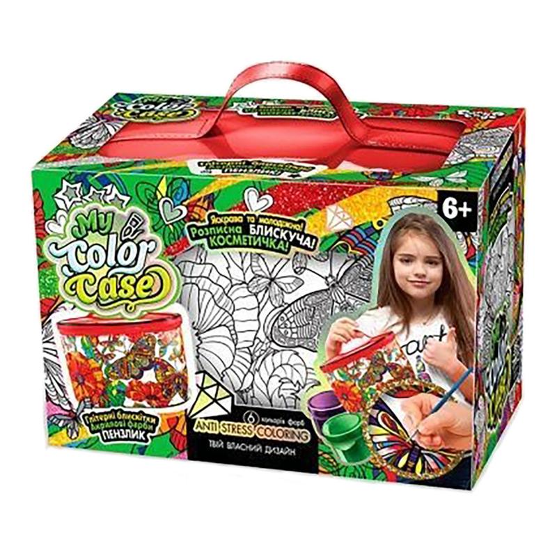 Набір для творчості My Color Case призначений для того, щоб малюк трохи творчо попрацював і зробив щось своїми ручками. Косметичка - це дуже стильна і красива річ. А дівчинка додасть їй унікальності, власноруч прикрасивши нанесені на її поверхню візерунки акриловим лаком. Яскраві фарби пожвавлять косметичку, зроблять її неповторною. А якщо додати до них гліттер, то вони буквально засяють. Маленька модниця буде просто у захваті. Кожна така косметичка - це свого роду популярне розмальовка-антистрес з химерним переплетенням візерунків. Розфарбовуючи її, дитина дійсно відпочине і розслабиться. Вік: 6+ Розміри упаковки: 21х14х12 сантиметрів Виробник: Danko Toys