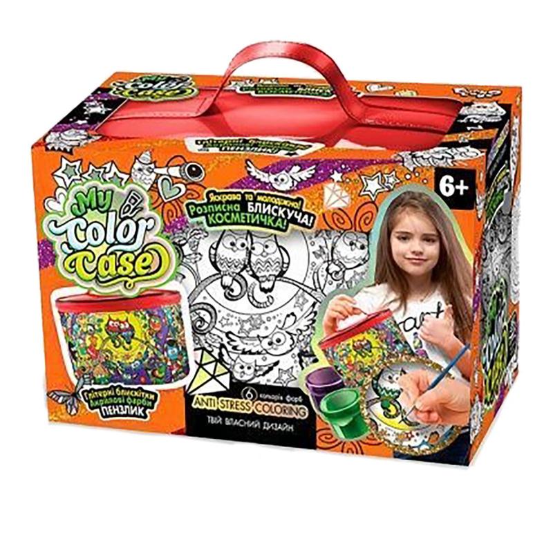 Набір для творчості My Color Case призначений для того, щоб малюк трохи творчо попрацював і зробив щось своїми ручками. Косметичка - це дуже стильна і красива річ. А дівчинка додасть їй унікальності, власноруч прикрасивши нанесені на її поверхню візерунки акриловим лаком. Яскраві фарби пожвавлять косметичку, зроблять її неповторною. А якщо додати до них гліттер, то вони буквально засяють. Маленька модниця буде просто у захваті. Кожна така косметичка - це свого роду популярне розмальовка-антистрес з химерним переплетенням візерунків. Розфарбовуючи її, дитина дійсно відпочине і розслабиться. Вік: 6+ Розміри упаковки: 21х14х12 сантиметрів Виробник: Danko Toys