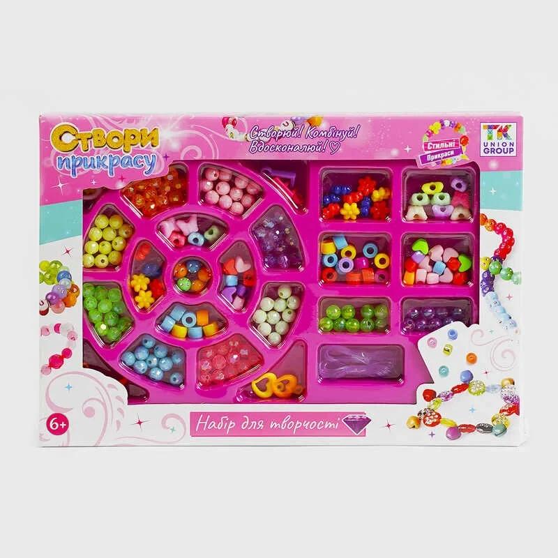 Пориньте у світ творчості з набором бісеру! Набір “Створи прикрасу своїми руками” - це ідеальний вибір для юних майстринь та творчих особистостей, які прагнуть виразити свій індивідуальний стиль за допомогою унікальних прикрас. Цей набір відкриває безмежні можливості для самовираження, адже юні дизайнерки зможуть опанувати різноманітні техніки створення унікальних виробів. Вас чекає багато годин захоплюючої діяльності та неймовірні емоції від результату ваших зусиль. Цей набір не лише допоможе розвинути креативність, але й стане чудовою можливістю для дітей відкрити свої індивідуальні риси під час створення чудових прикрас. Особливості набору: - Різноманіття намистин різних кольорів та фактур для безмежних комбінацій; - Включена нитка для плетіння та застібка; - Якісні пластикові намистини, що забезпечують довговічність; - Рекомендовано для дітей віком від 6 років; - Креативні набори сприяють розвитку творчих здібностей та естетичного смаку з раннього віку.