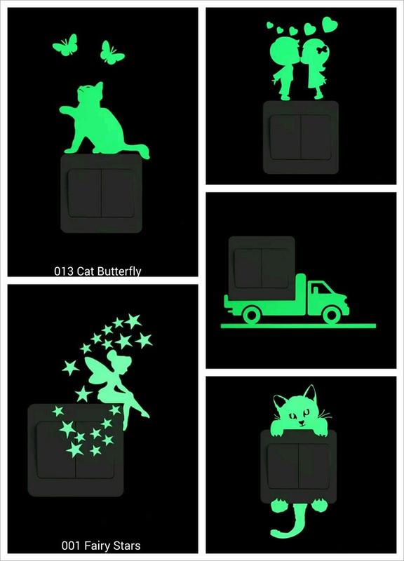 Наклейка на вимикач або розетку, заряджається світлом та світиться в темряві.