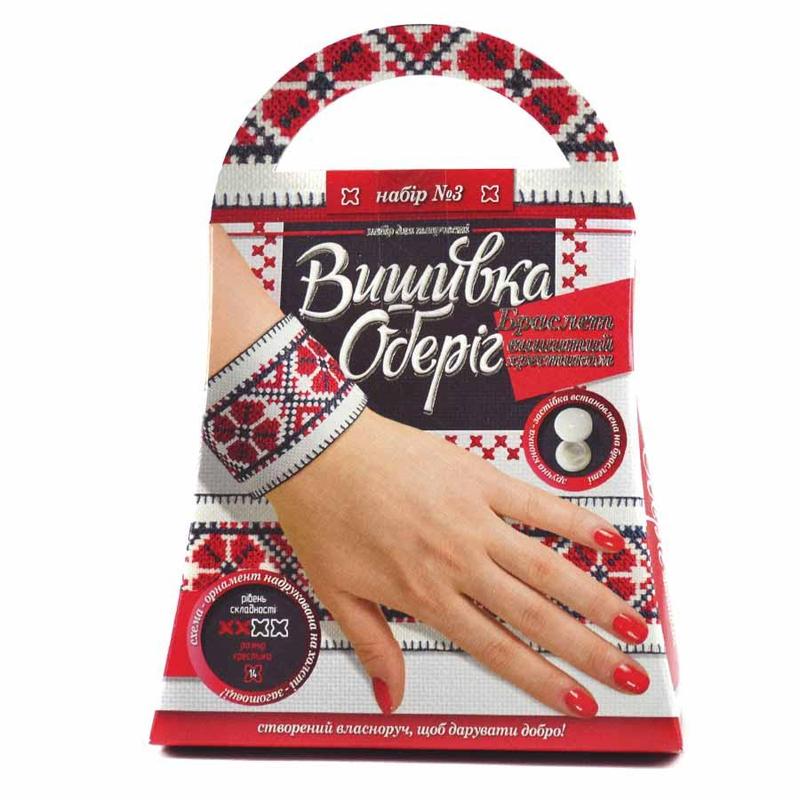 Размер заготовки - 170 х 45 мм. Размер крестика - 14 Возраст: от 9 лет Сложность 2 Комплектация: - Нитки мулине, - Заготовка с орнаментом , - Инструкция- схема - Иголка - Кнопка-застежка ( уже на заготовке)