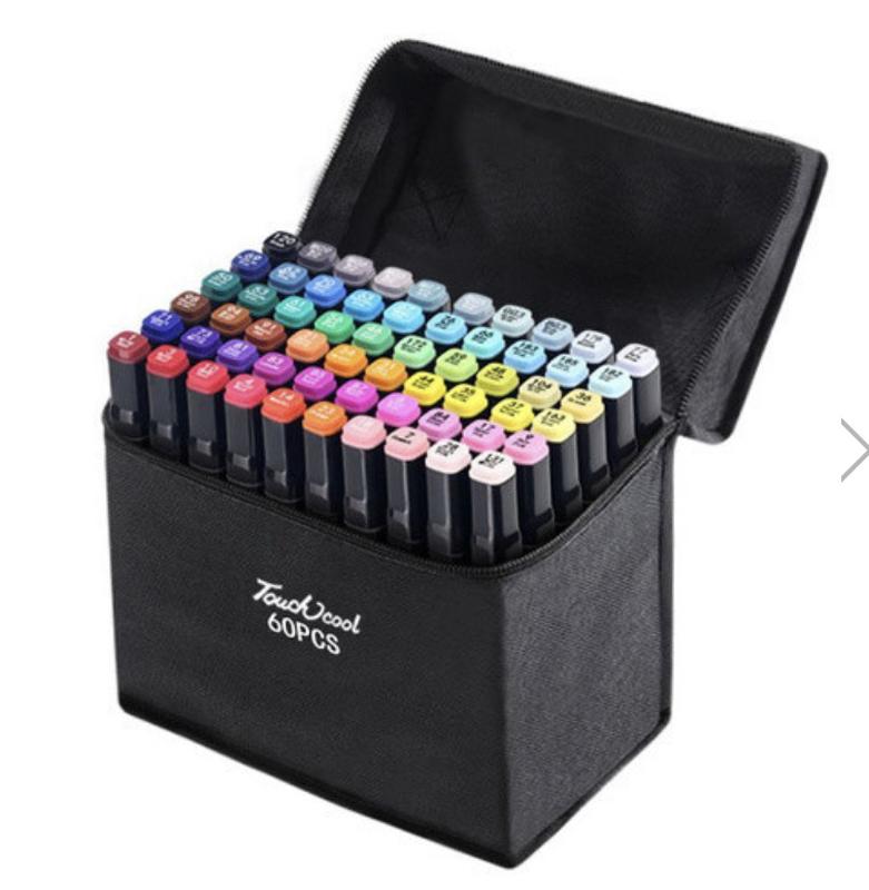 Опис Серія з чорним корпусом маркера – нова покращена формула чорнила Маркери для малювання та скетчів у чорному тканинному футлярі. Двосторонні, на спиртовій основі. У наборі 60 шт. Основна палітра оптимально підібрана для малювання всіх стилів. Скетч-маркери Touch – це найпопулярніші спиртові скетч-маркери в Україні. Є одними з найбільш популярних спиртових, двосторонніх маркерів. У наборі із 60 маркерів дизайнер знайде натхнення для реалізації свого творчого потенціалу. Маркер має 2 пера (перо "долото" і перо маркер). Чим більша кількість маркерів у наборі, тим нижча вартість одного маркера з перерахуванням на кількість. Колір маркера відображено на ковпачку, там же номер маркера. Це значно полегшує роботу при виборі необхідного кольору. Варто врахувати, що насиченість чорнила трохи більше ніж колір на ковпачку.