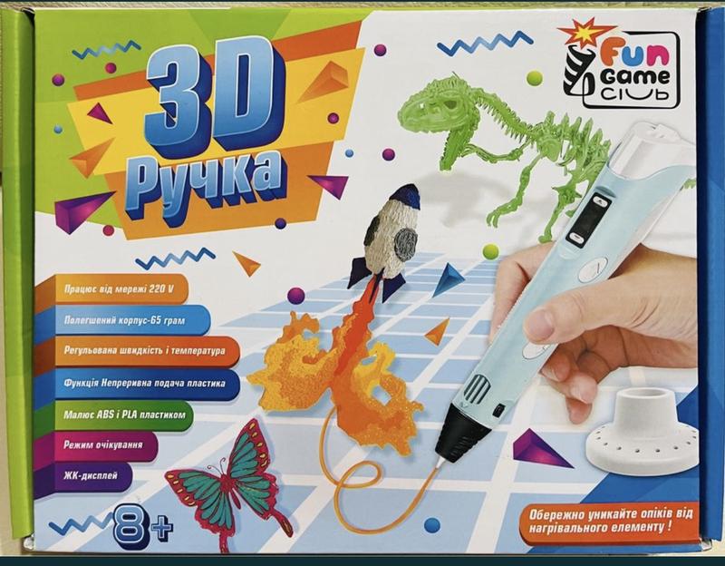 Набір для творчості 3D Ручка 19см, тип філаменту (пластик) - PLA, USB-шнур, запаска, в коробці 21*16.5*6см.