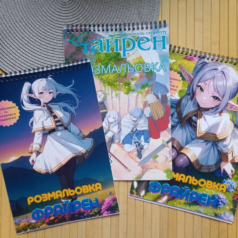 Комплект з 3 розмальовок Фрайрен 12 сторінок+ стікерпак