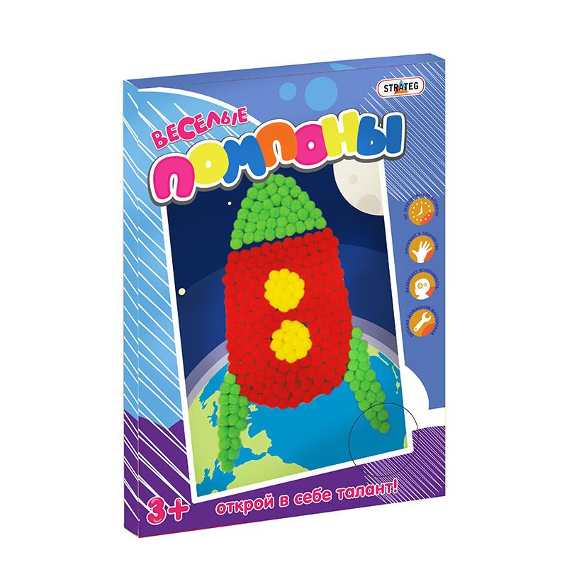 Веселі помпони «Ракета» – набір, який сприяє поліпшенню візуального сприйняття, розвиває фантазію, акуратність, посидючість і дрібну моторику. Він складається з основи і невеликих яскравих помпончиків, які необхідно встановити за інструкцією в правильній послідовності. Поєднуючи деталі, дитина отримує об'ємну картинку з ракетою, що летить на тлі космосу. Готове зображення послужить відмінною прикрасою кімнати або стане незабутнім подарунком. Всі складові – екологічно безпечні і дуже приємні на дотик. Дитині буде цікаво і весело складати картинку самостійно чи разом з батьками.