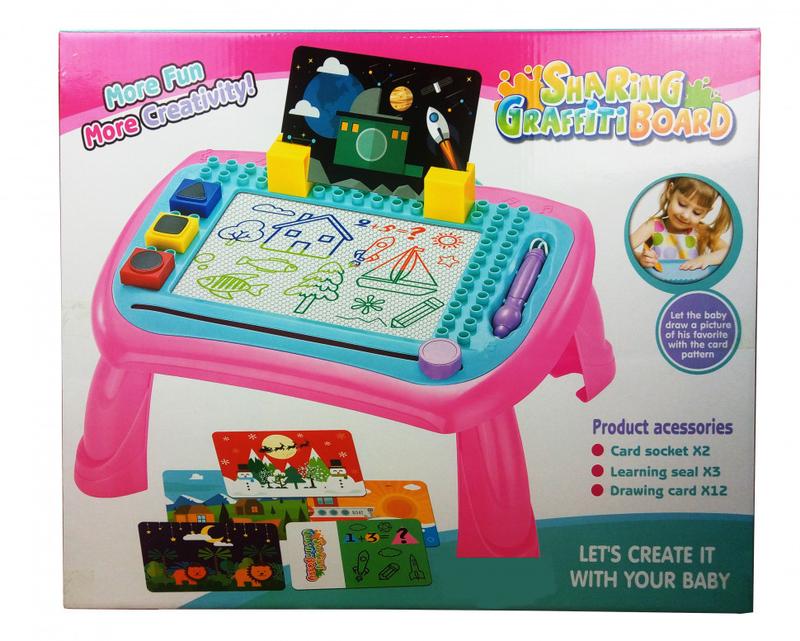 Разработанный из высокопрочного, нетоксичного пластика, стильный и компактный столик-дощечка для рисования 009-2023-5 сочетает в себе продуманную, устойчивую конструкцию и привлекательный, современный дизайн. Модель размером 36-30-18 см дополнена тремя штампами для рисования, а также специальными крепежами для конструкторов. В обновленной линейке торговой марки представлены два варианта цветовых расцветок детского столика, с ручкой для рисования, 12 картами и рычагом, который простым движением стирает надписи на доске. Занимаясь за столиком, ребенок развивает фантазию, ассоциативное и пространственное мышление, логику и сенсорику, цветовое и эстетическое восприятие.