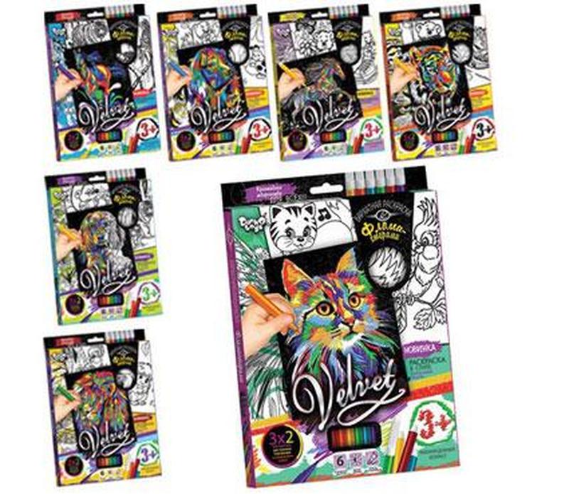 Оксамитове розфарбовування фломастерами velvet "10 видів vlv-01-01,02,03...10