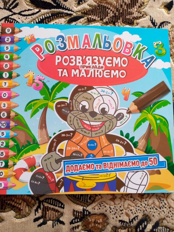 На сторінках цих розмальовок заховались «секретні» малюнки, а щоб їх розфарбувати потрібно правильно розв’язати приклади, розміщені у кожній частині малюнка. Розв’язок прикладу відповідає кольору, в який потрібно розфарбувати саме цю частинку малюнка. Таким чином, дитина непомітно для себе тренується правильно виконувати основні математичні дії – додавання та віднімання, множення та ділення, а в результаті правильного розв’язання прикладів виходить чудовий кольоровий малюнок. Розмальовки серії «Розв’язуємо приклади та малюємо» сподобаються як маленьким діткам, так і старшим, адже вони розраховані на різні вікові категорії: дошкільнята чудово підготуються до уроків математики, а школярі молодших класів в ігровій формі повторюватимуть та вивчать «на зубок» табличку множення та ділення, додавання та віднімання. Розв’язувати приклади та розфарбовувати малюнки – це не тільки надзвичайно захоплююче, а й корисне розвиваюче заняття, адже воно сприяє розвитку математичних і творчих здібностей, пам’яті, уяви, уважності, логічного мислення та дрібної моторики.