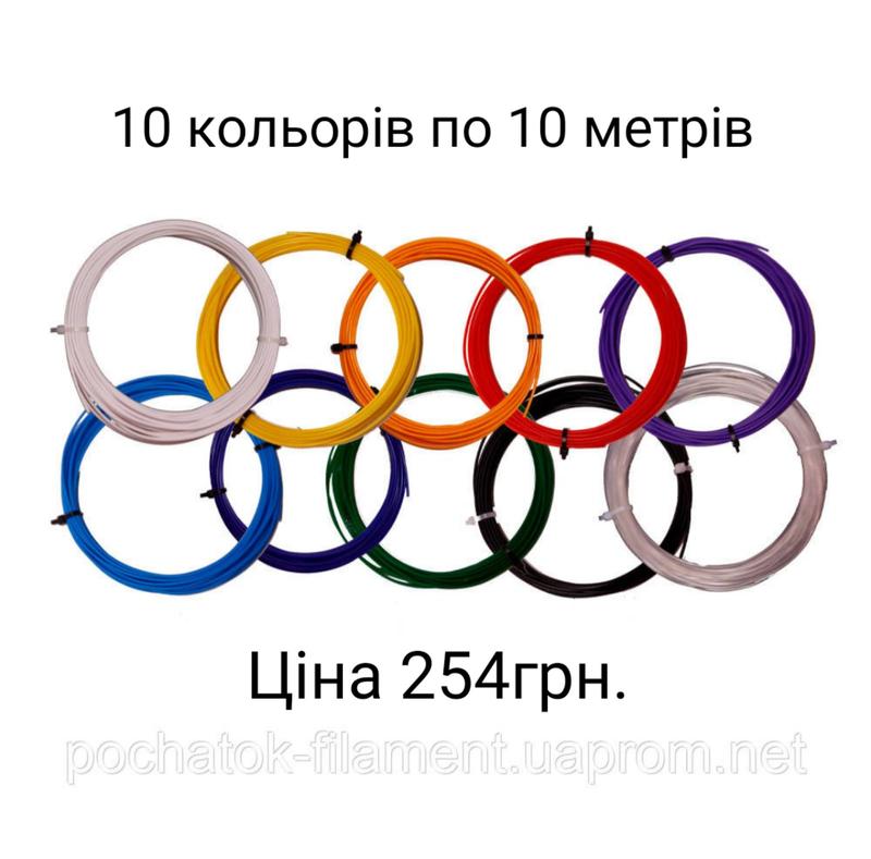 Набір 10 кольорів по 10 метрів pla-філамент (100 метрів)