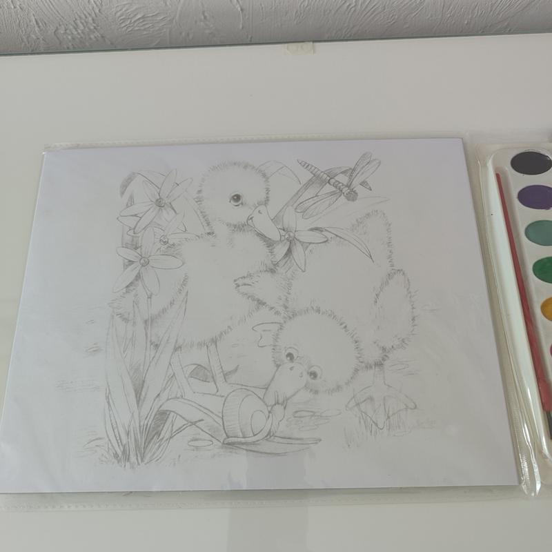 Набор для рисования, 4 листа с эскизами и краска