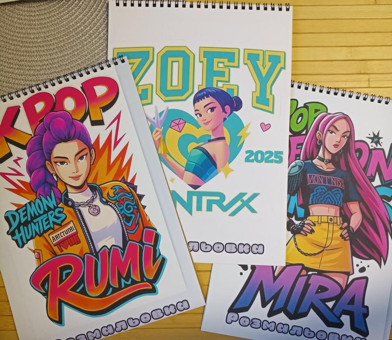 Раскраска kpop demon hunters кейпоп--охотницы на демонов а4 набор 3 шт (26912)
