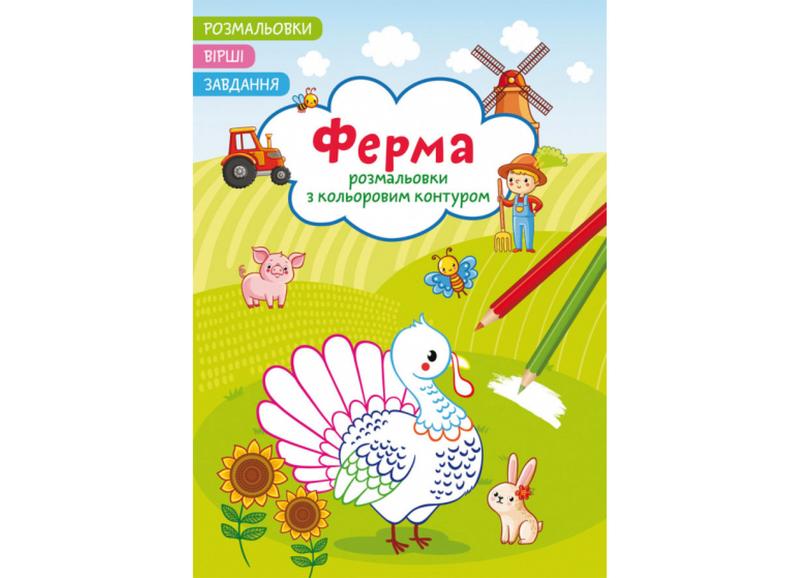 Розмальовки з кольоровим контуром. ферма. вірші, завдання