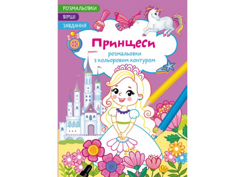 Розмальовки з кольоровим контуром. принцеси. вірші, завдання
