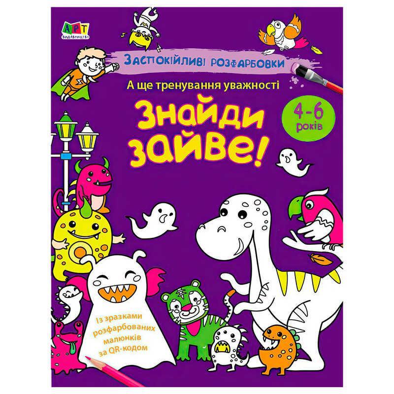 Заспокійлива розмальовка для дітей з тренуванням уважності Ця унікальна розмальовка «Знайди зайве!» за Артикулом АРТ11419У пропонує малятам веселий і корисний процес творчості. На кожній сторінці представлені цікаві чорно-білі малюнки з кумедними персонажами — супергероями, монстриками, ельфами, котиками та піцою. Завдання — знайти зайвий об'єкт серед них і розфарбувати його, а також оживити інші малюнки своїми улюбленими кольорами. - Формат: 20х26 см - Обкладинка: м’яка - Кількість сторінок: 16 - Мова видання: українська - Ілюстрації: чорно-білі з QR-кодом для кольорового зразка - Розвиває уважність і творчі здібності дітей