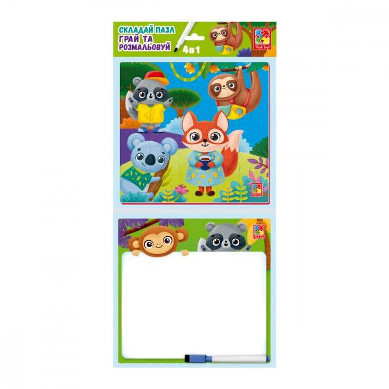 Розвиваючий набір 4 в 1 "звірятка" vt2002-03 пазл, розмальовка. маркер