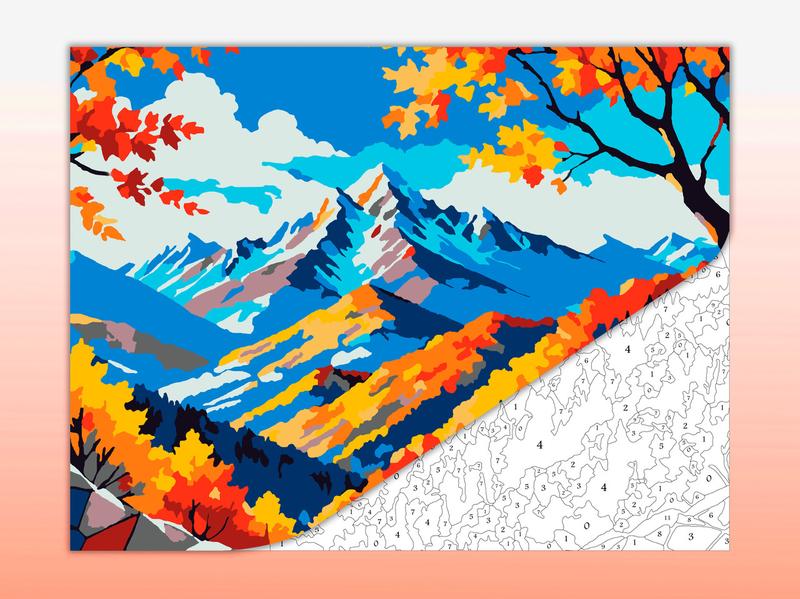 Розмальовка за номерами для дітей та дорослих "осінні гори"