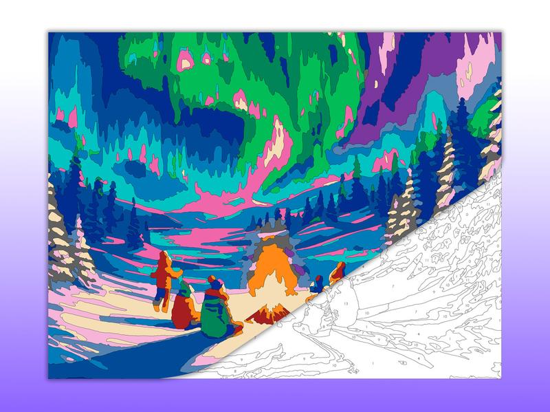 Раскраска по номерам для детей и взрослых "полярное сияние"