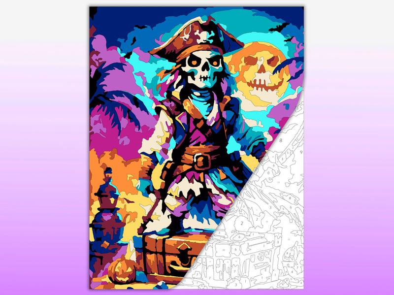 Розмальовка за номерами для дітей та дорослих "скелет-пірат"
