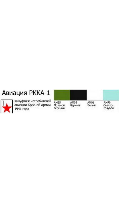 Тематический набор акриловых красок ХоМа "Авиация РККА-1". Камуфляж истребителей авиации Красной Армии 1941 года. Набор акриловых красок ХоМа 4 шт по 12 мл: - АМ55 Полевой зелёный - АМ02 Чёрный - АМ01 Белый - АМ70 Светло-голубой Краска предназначена для окраски дерева, бумаги, пластика, металла с помощью кисти или аэрографа. Краска негорючая, нетоксичная, не имеет неприятного запаха, упакована в четыре пластиковые баночки объёмом 12 мл. Начинать окрашивание следует с основного тона или светлого оттенка камуфляжа. Поверхность, которая будет краситься, обязательно обезжирить. Для обеспечения лучшего сцепления краски с окрашиваемой поверхностью можно использовать акриловый грунт. Для аэрографа краску следует разбавить дистиллированной водой. Распылять нужно тонким слоем после окончательного высыхания предыдущего слоя . Полная полимеризация краски наступает через 24 часа, после чего краска не смывается водой. Сразу по завершению работы, кисти и аэрограф необходимо тщательно вымыть.