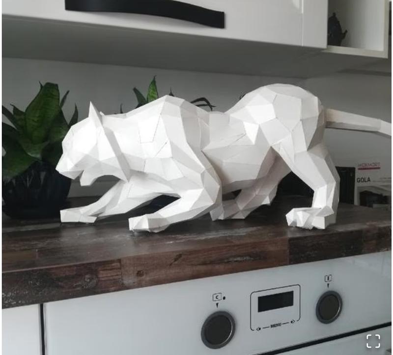 Paperkhan конструктор из картона кот лев тигр пума оригами papercraft 3d фигура развивающи...