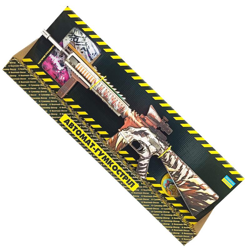 Діюча модель Автомата "М16", зарядний механізм із 10-ти патронів Модель із фанери (готовий зібраний варіант у подарунковій упаковці), стріляє гумками для грошей Автомат стріляє: -одиночним пострілом -чергою У комплекті: -Гумки для стрільби (патрони) -Брелок -Комплект наклейок Максимум позитиву! Патрони продаються в найближчих Канцтоварах