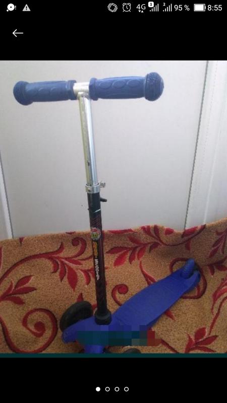 СМ.ВСІ ОПИС! Віддам під ремонт або на запчастини! Зручний, стійкий, дитина навчився кататися з першого разу. Колеса світяться в темряві не втратите. В робочому стані. Висота регулюється. Вік з 2ух років. Розхитана ручка(при бажанні можна щось зробити), стерто заднє колесо, див. фото. Ціна без торгу. Відправлю,НЕ розбирається! Можу опустити ручку максимально вниз. Є питання? Напишіть мені!)