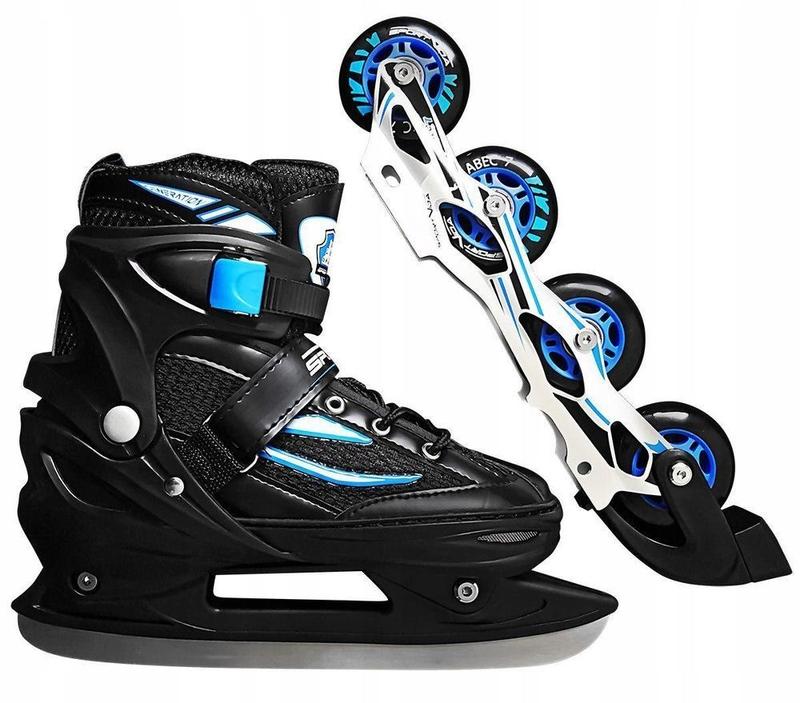 Роликові ковзани від польського бренду SportVida виконані виключно із високоякісних матеріалів. Вентильовані черевики забезпечують максимальний комфорт, а триточкове кріплення надійно фіксує ногу та гарантує безпеку під час руху. Спеціальна конструкція роликових ковзанів SportVida - 4 в 1, робить їх максимально універсальними. На початковому етапі, поки у дитини проблеми із балансом, колеса встановлюються по два в ряд. Пізніше, ролики легко переобладнати, встановивши два передні колеса в ряд. Досвідчені роллери можуть починати із класичної розстановки коліс - всі в один ряд. Також у комплекті змінні леза, які за лічені хвилини перетворять улюблені ролики вашої дитини у льодові ковзани. Система регулювання розміру дозволить використовувати ролики навіть, якщо нога дитини виросте. Розрахована дана модель на 4 розміри. ОСОБЛИВОСТІ: - колеса: PU 64 мм 82А - змінні леза із нержавіючої сталі - підшипники: ABEC 7 - черевик: напівм'який - тип лайнера: інтегрований - матеріал рами: алюмінієвий сплав - фіксація ноги: бакля (кліпса), п'ятковий ремінь, шнурки - п'яткове гальмо